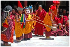 Hemis Festival, Ladakhh - The courtyard of Hemis - the biggest Buddhist monastery in Ladakh, is the stage of the famous Hemis Festival, that celebrates the birth anniversary of Guru Padmasambhava. Splendid masked dances are performed to the accompaniment of cymbals, drums and long horns. A colourful fair, displaying some beautiful handicrafts, is the special highlight of the festivals.
