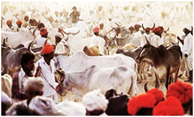 Nagaur Fair - Nagaur awakes to the thronging of cattles, horses and camels during the time of cattle fair, which is reputed as one of the biggest in the country. The Nagaur bulls are renowned for their fleet-footedness and attract buyers from all over the world. Their owners with large moustaches and colorful costumes add a unique charm to the fair. Renowned for trading in cows, bullocks, camels and horses Held every year during the month of Magh (Jan-Feb) Provides an opportunity for a shopping spree to the locals The fair comes to an end with a series of exciting games including tug of war, camel races and strains of ballads that create a joyful atmosphere. Mirchi Bazaar (Red Chilly Market) is the main attraction and wooden items, iron crafts and leather accessories are also available in abundance during the fair.
